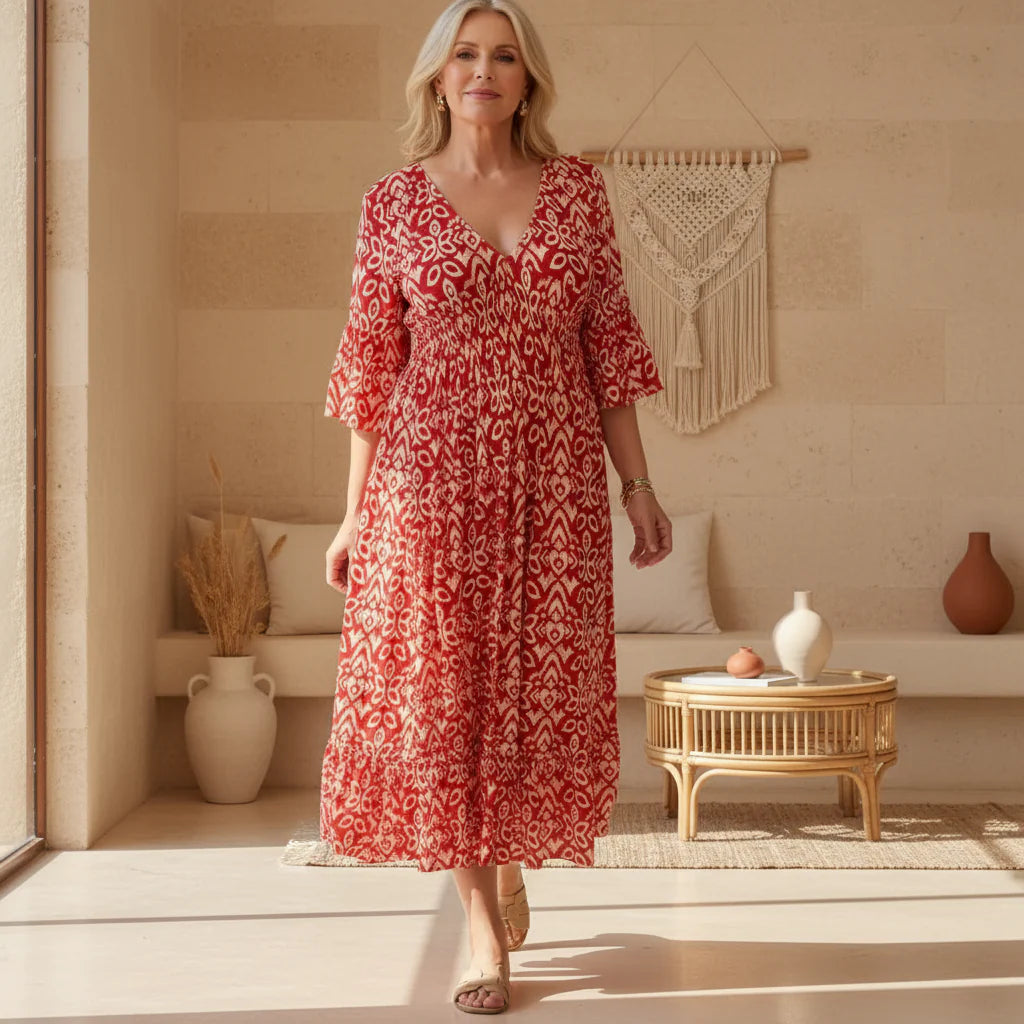 The soft V-neckline and 3/4 sleeves create that perfect feminine balance — graceful, flattering and so easy to wear. Whether you’re heading to a family gathering, brunch with friends or a weekend away, Isabelle brings effortless charm to any moment.